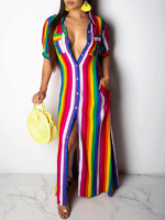 The Spread Neck Striped Maxi Dress has a wide collar and loose design that you can pull the neckline down. Fully Show Your Perfect Shape!